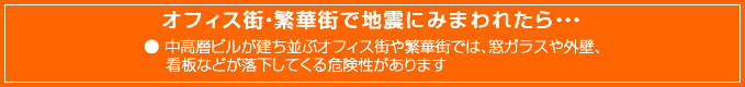 ●繁華街では、オフィス街には少ない店の看板やネオンサインなどの落下・転倒物が加わります。
