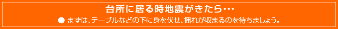 ●コンロの近くの場合、調理器具が滑り落ちてくる場合があるので、コンロの近くから離れ、揺れが収まったら落ち着いて火を消しましょう。